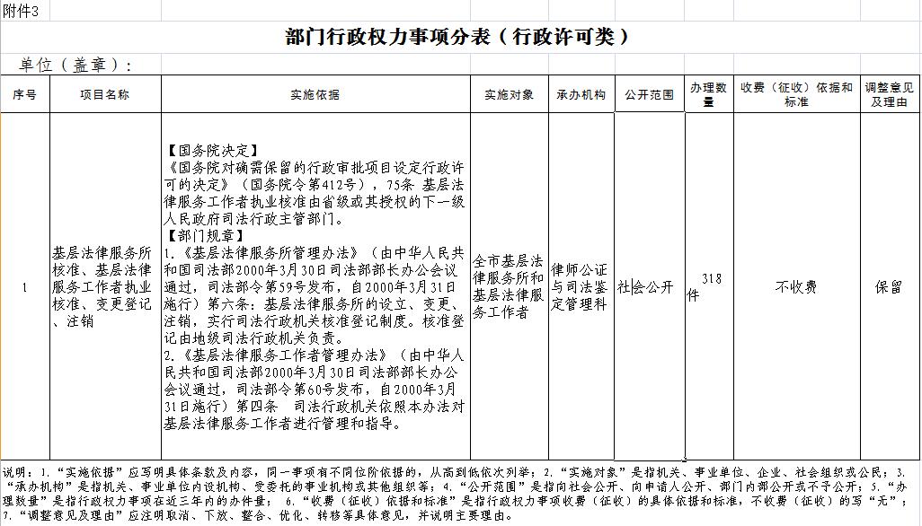 酒泉市司法局部门行政权力事项分表(行政许可类)